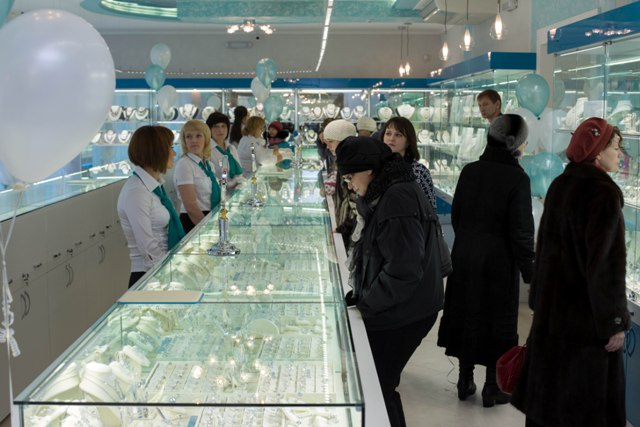 Приятная музыка, высококвалифицированные продавцы-консультанты – и все это в окружении блеска золота, серебра, бриллиантов и других драгоценностей из последних коллекций ведущих ювелирных производителей, представленных на белых планшетах.