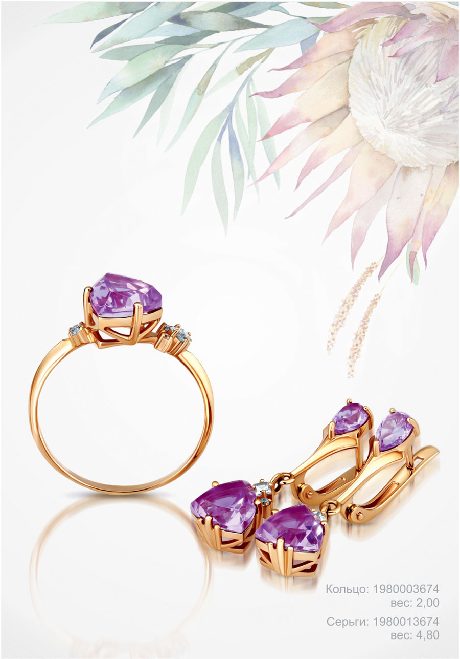 Классические изделия коллекции «LAVANDE» выглядят очень свежо благодаря яркому ситаллу, украшающему их. Ситалл – это современный, красивый и надежный материал. Его глубокий лавандовый цвет привносит в каждое украшение неповторимость и индивидуальность. Изделия коллекции помогут создать женственный, романтичный образ или гармонично дополнить вечерний изысканный наряд.