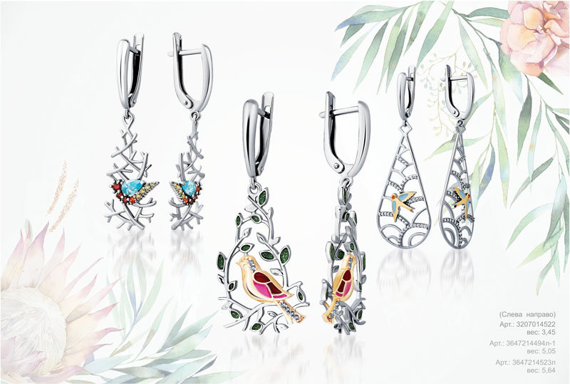 Главным образом, объединяющим все изделия коллекции, являются птицы, возвещающие о начале весны. По словам автора коллекции, образы подсказала сама Природа: ветви деревьев, капли росы, поющие птицы… Каждое украшение – это целая композиция, созданная руками профессионалов из серебра с фианитами и расписанная вручную яркой эмалью. Необычные серьги создают весеннее настроение, а птицы символизируют свободу и счастье.