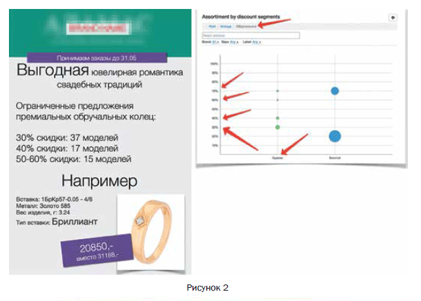 Пойдем глубже и рассмотрим «имиджевые» товары в интервале от 30 000 до 100 000 рублей, пусть это будут кольца со вставкой из, например, изумруда - рисунок 11.