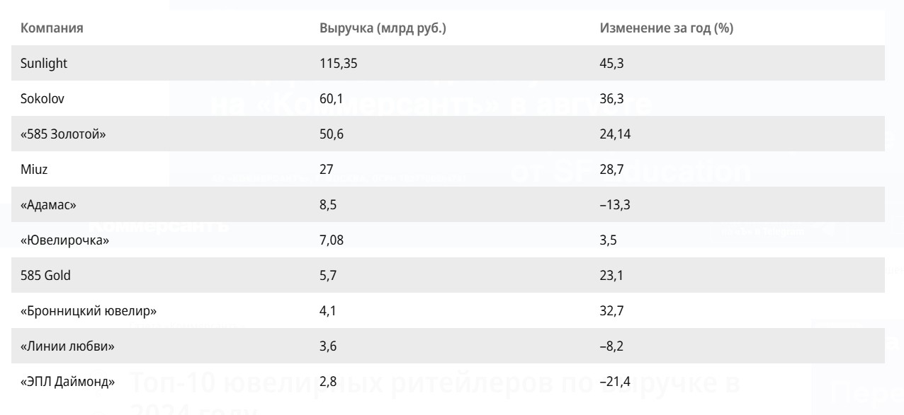 Топ-10 ювелирных ритейлеров по выручке в 2024 году